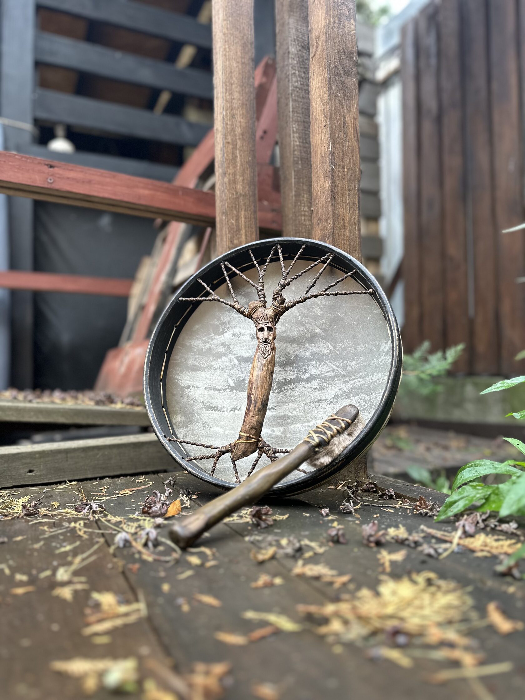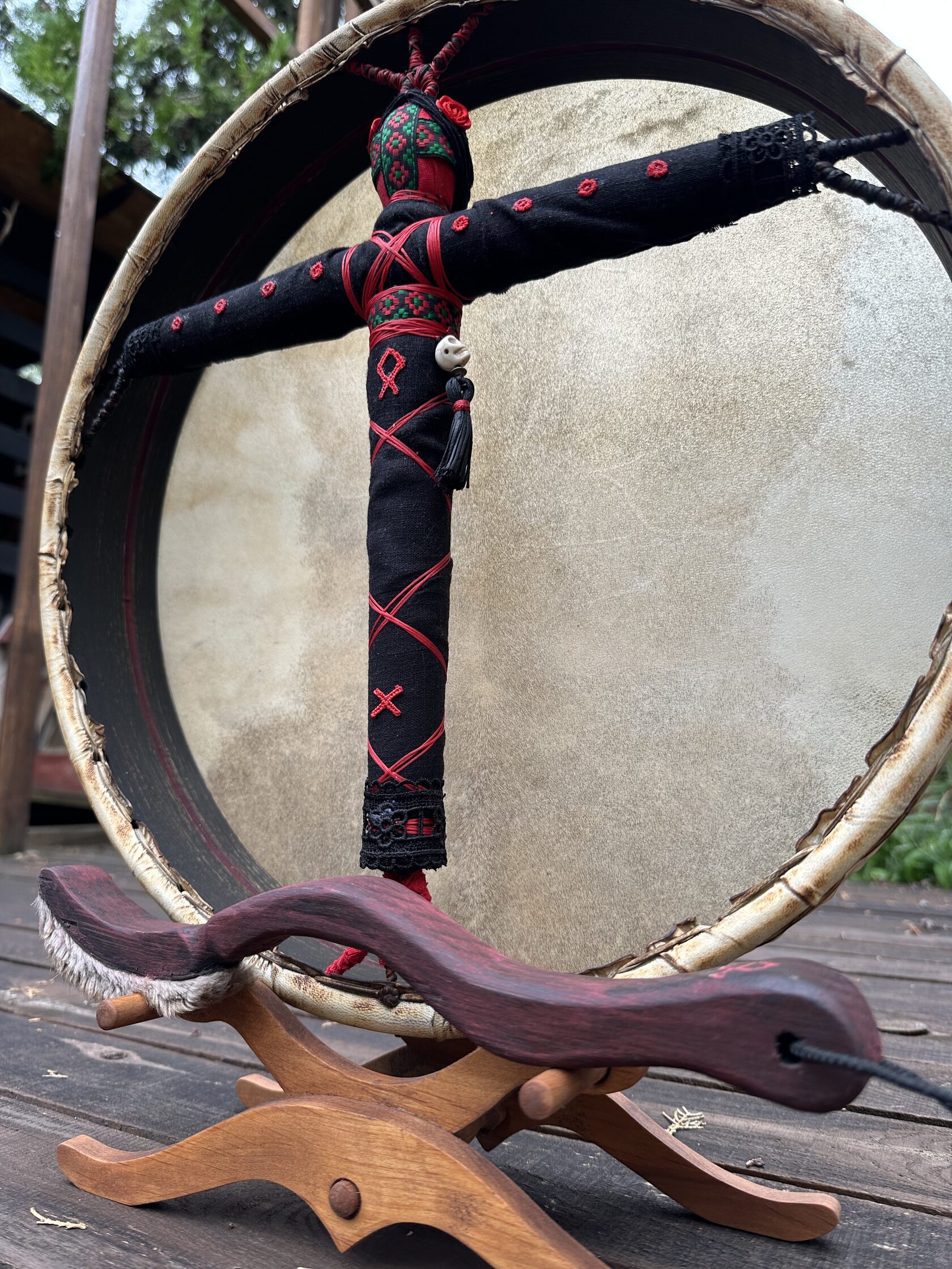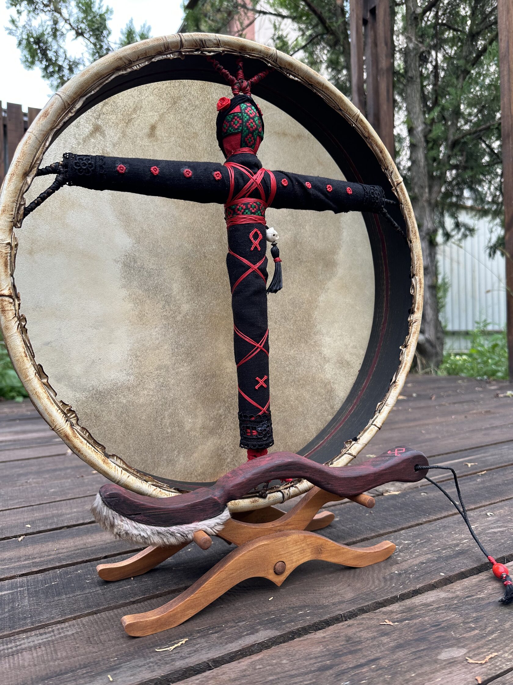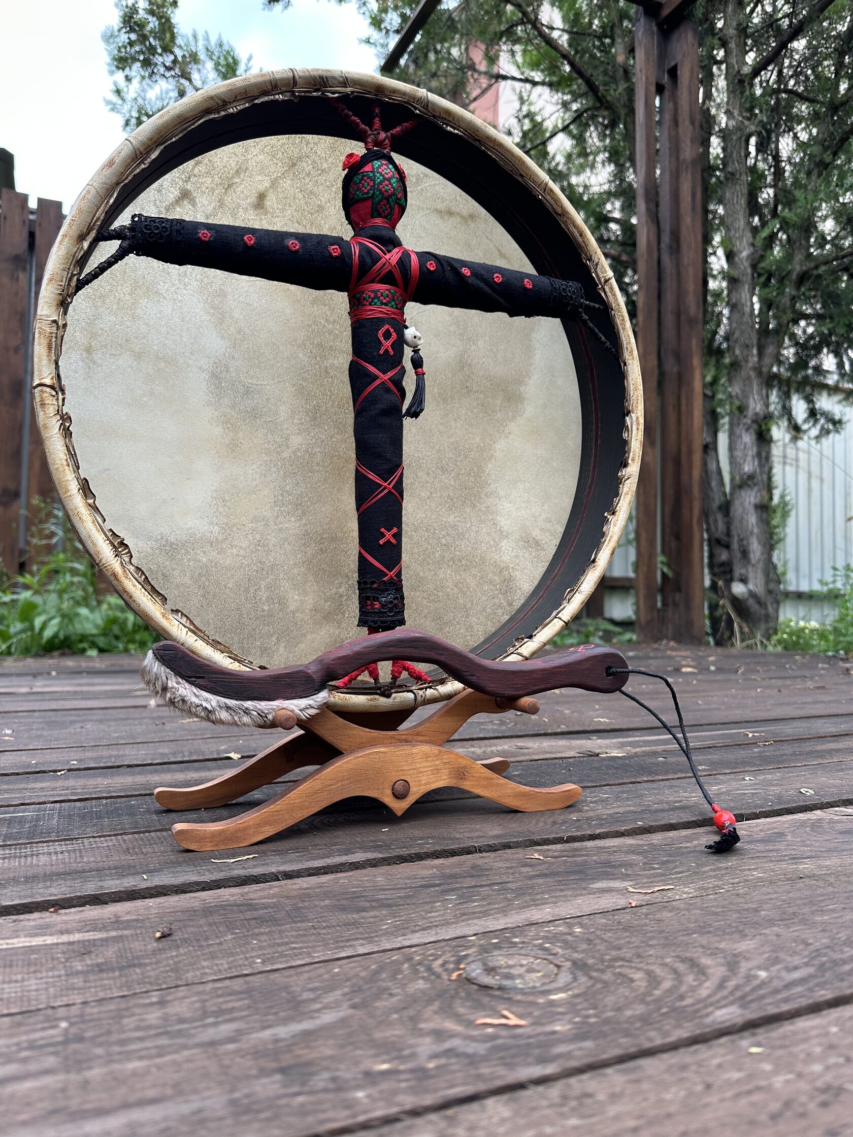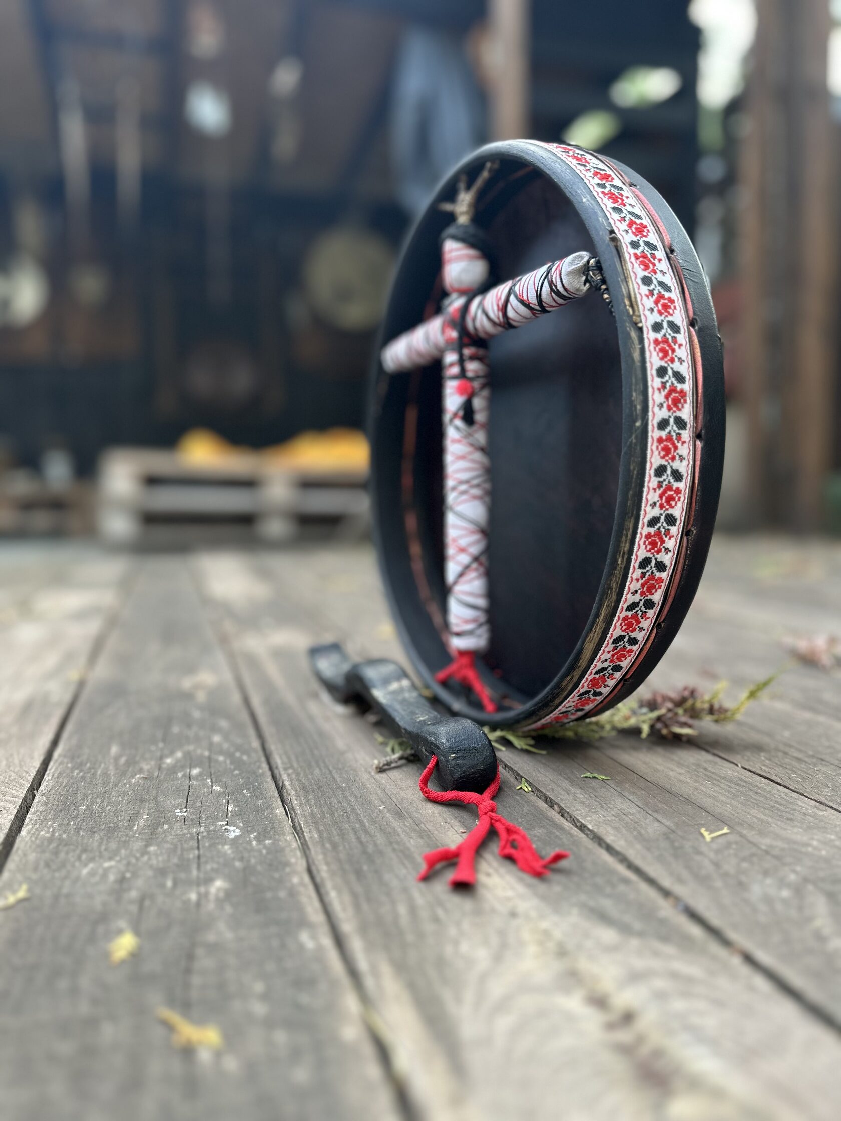 | Про мене Привіт. Мене звати Макс, і моя історія з бубнами почалася у 2015 році. Тоді я вперше вирішив зробити бубон для себе — так з’явилося хобі, яке з часом перетворилося на справу життя. У 2018 році я зробив сміливий вибір: після 18 років у великій компанії залишив офісну роботу, щоб присвятити себе ремеслу. Відтоді створення шаманських бубнів стало моєю професією та покликанням. За понад 10 років я виготовив більше двох тисяч бубнів, і сьогодні вони звучать у багатьох країнах світу. Завдяки багаторічній практиці та наполегливій роботі мені вдалося виробити власний підхід до створення інструментів. Саме тому кожен бубон має глибокий і насичений низький звук, який відчувається всім тілом. Це результат досвіду, який приходить лише з роками кропіткої праці. Окрему увагу я приділяю рукояткам: від символічних «Дерев життя» до складних різьблених фігур, створених вручну. Кожна рукоятка несе власний образ і сенс, роблячи інструмент неповторним. Я працюю лише з натуральними матеріалами: козячою шкірою для мембран, ясеневим деревом для ободів, сосною та вільхою для рукояток і колотушок. У декорі використовую метал, каміння, бісер, льон та інші природні матеріали, щоб надати кожному виробу завершеного образу й особливої сили. Кожен виріб народжується в моїй майстерні виключно вручну, має свій характер і допомагає власнику відкрити внутрішній ритм та силу. |