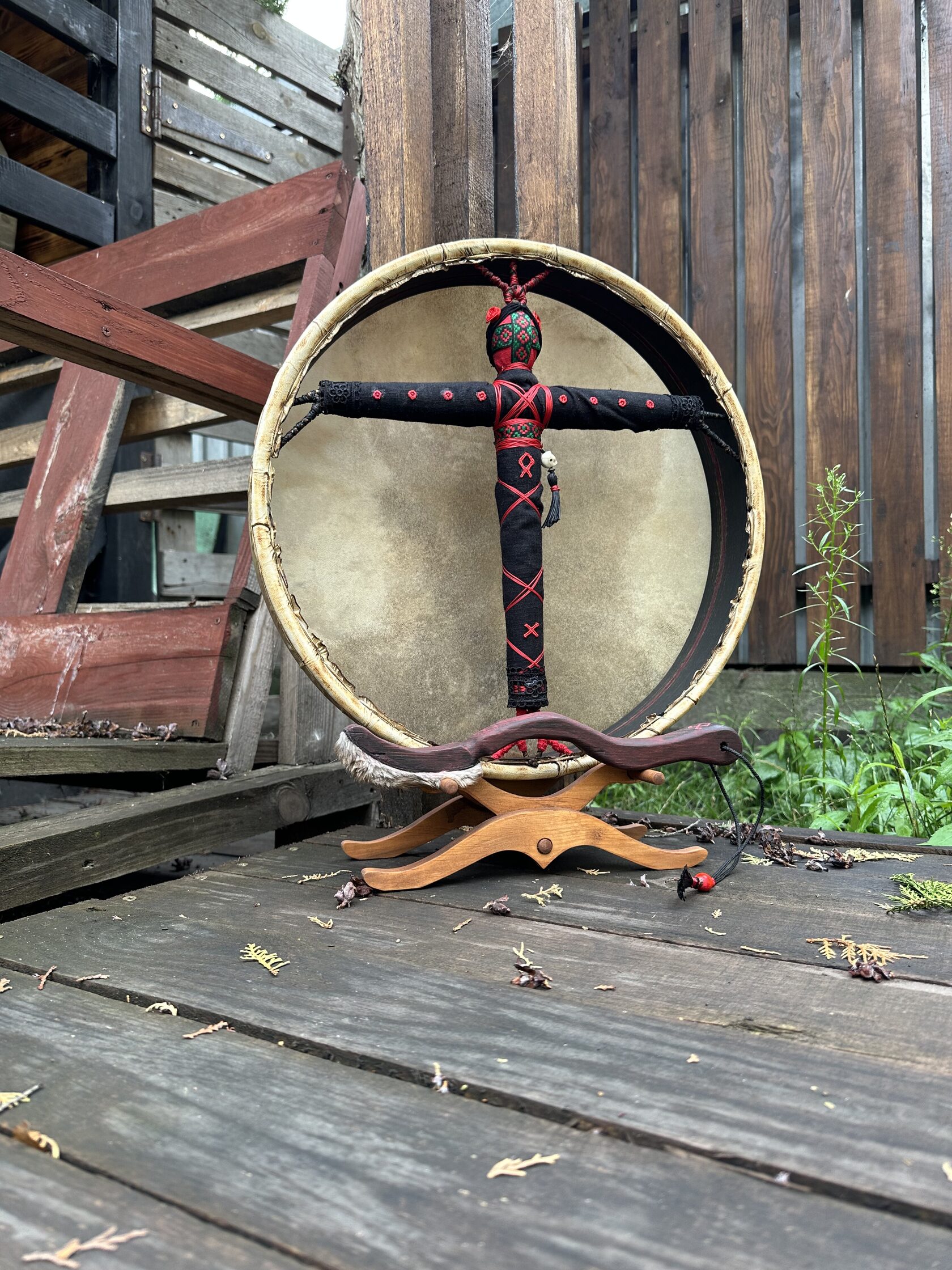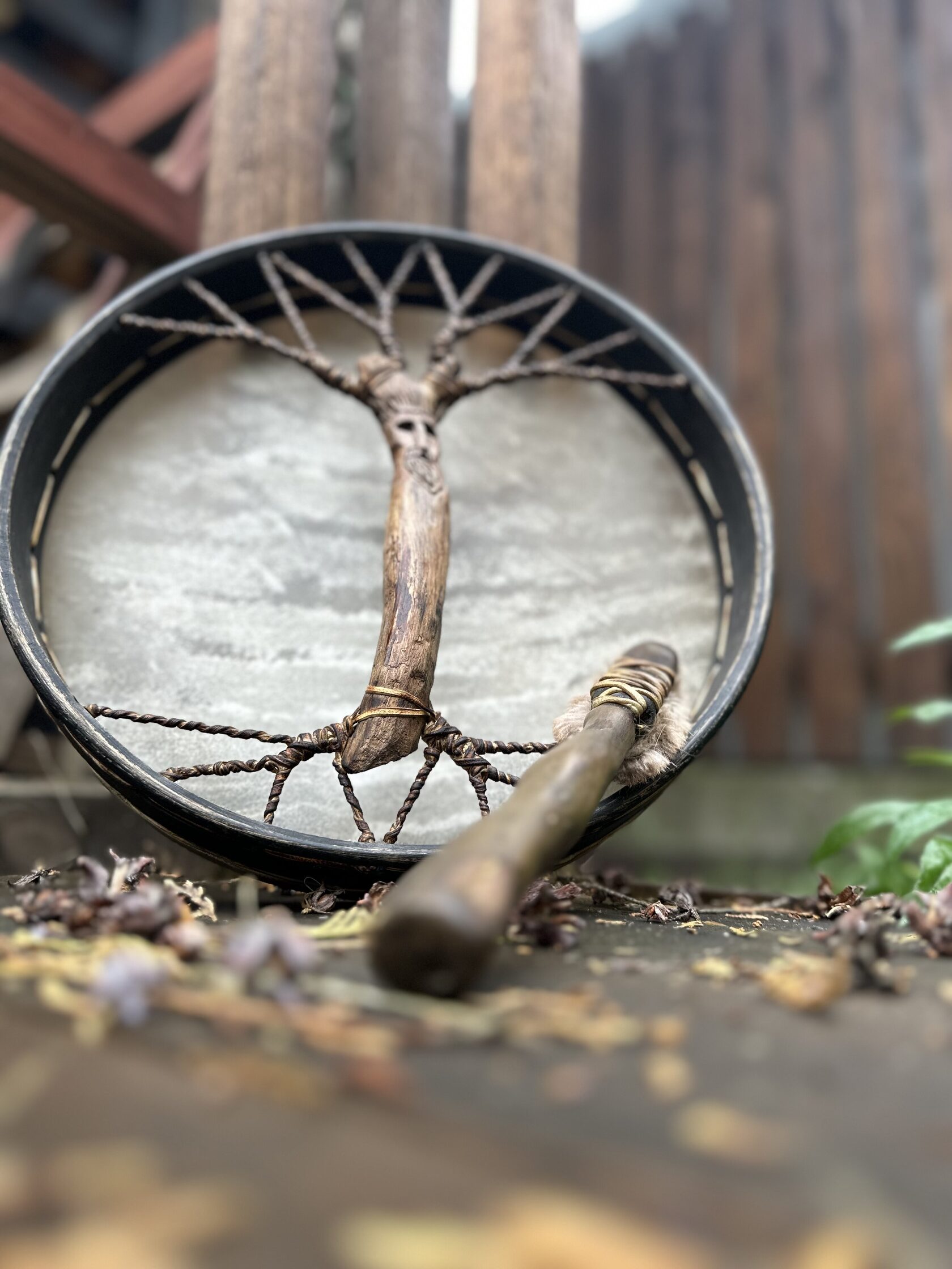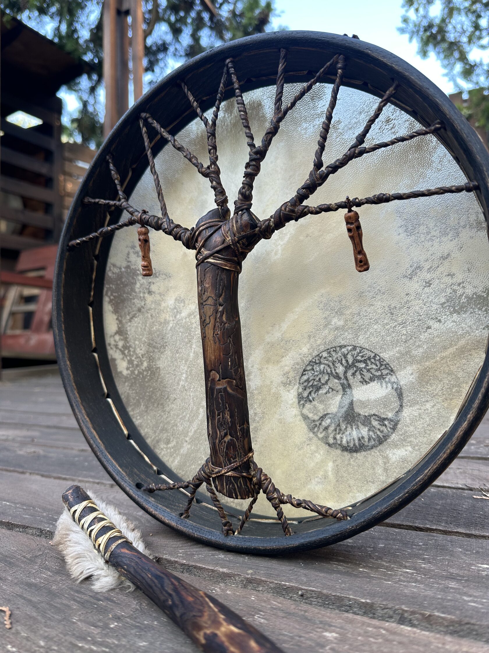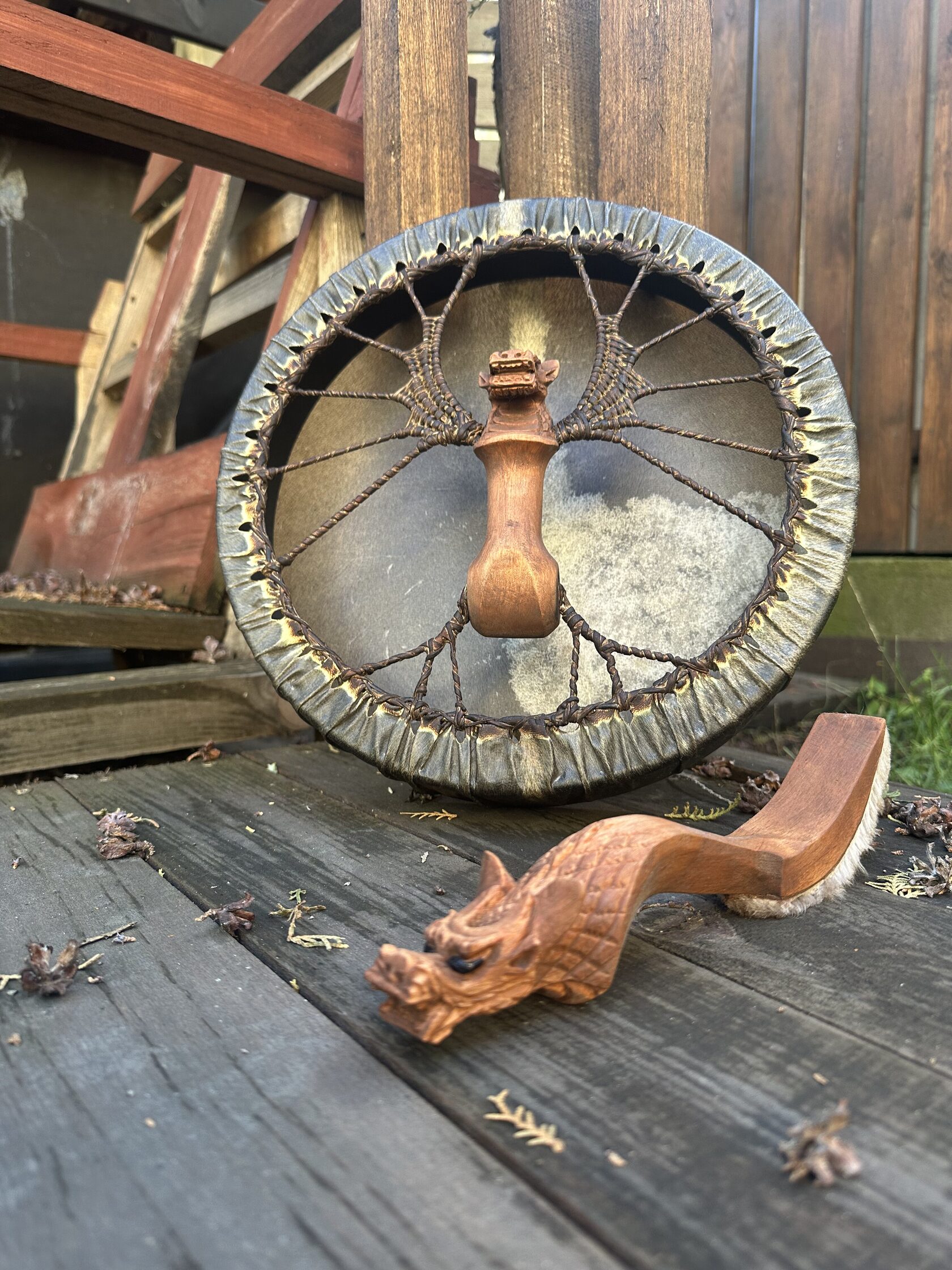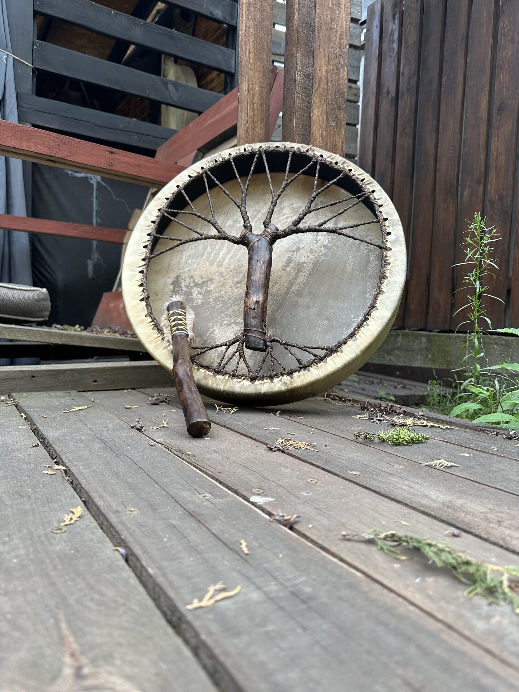 | Про мене Привіт. Мене звати Макс, і моя історія з бубнами почалася у 2015 році. Тоді я вперше вирішив зробити бубон для себе — так з’явилося хобі, яке з часом перетворилося на справу життя. У 2018 році я зробив сміливий вибір: після 18 років у великій компанії залишив офісну роботу, щоб присвятити себе ремеслу. Відтоді створення шаманських бубнів стало моєю професією та покликанням. За понад 10 років я виготовив більше двох тисяч бубнів, і сьогодні вони звучать у багатьох країнах світу. Завдяки багаторічній практиці та наполегливій роботі мені вдалося виробити власний підхід до створення інструментів. Саме тому кожен бубон має глибокий і насичений низький звук, який відчувається всім тілом. Це результат досвіду, який приходить лише з роками кропіткої праці. Окрему увагу я приділяю рукояткам: від символічних «Дерев життя» до складних різьблених фігур, створених вручну. Кожна рукоятка несе власний образ і сенс, роблячи інструмент неповторним. Я працюю лише з натуральними матеріалами: козячою шкірою для мембран, ясеневим деревом для ободів, сосною та вільхою для рукояток і колотушок. У декорі використовую метал, каміння, бісер, льон та інші природні матеріали, щоб надати кожному виробу завершеного образу й особливої сили. Кожен виріб народжується в моїй майстерні виключно вручну, має свій характер і допомагає власнику відкрити внутрішній ритм та силу. |