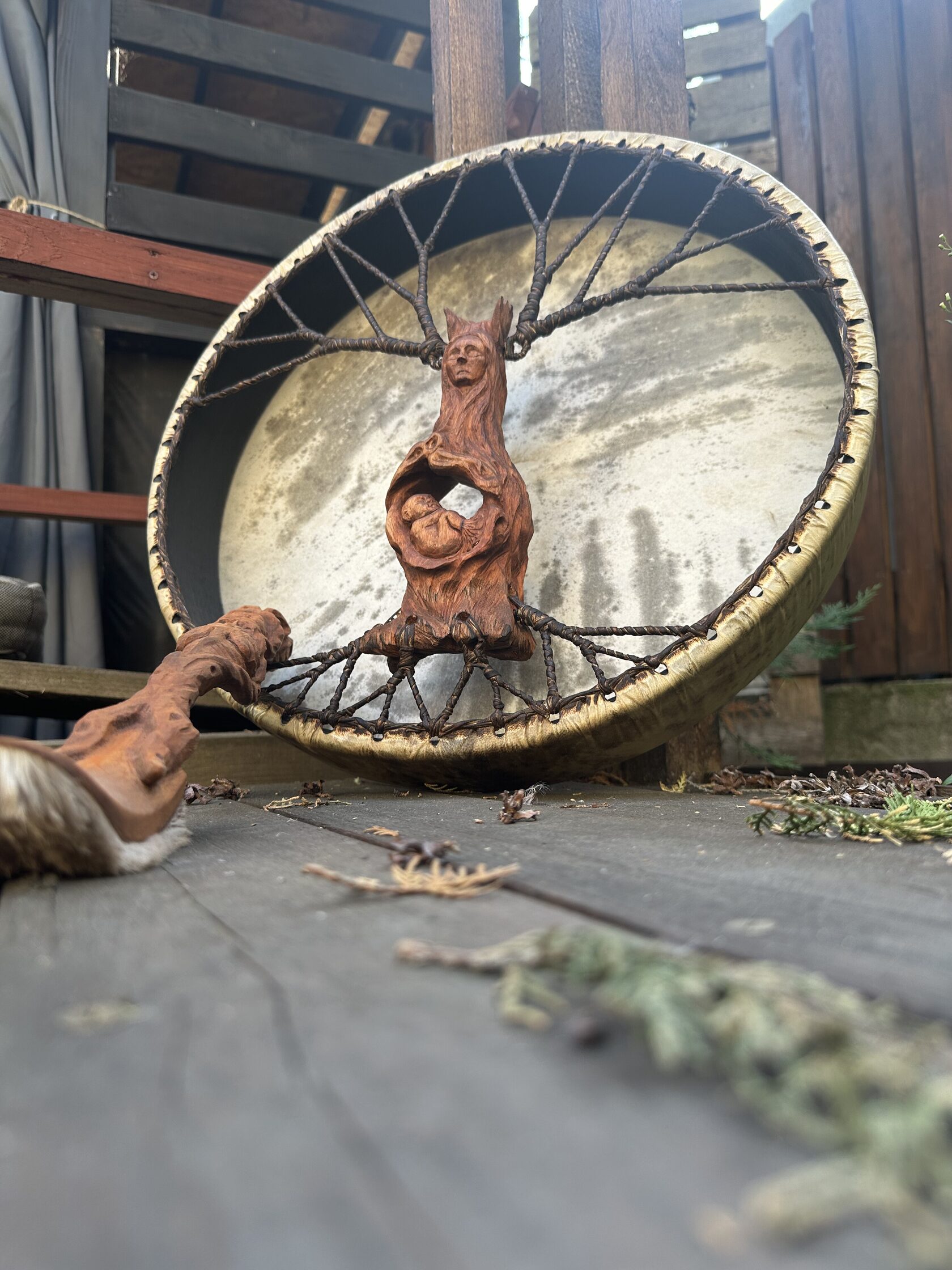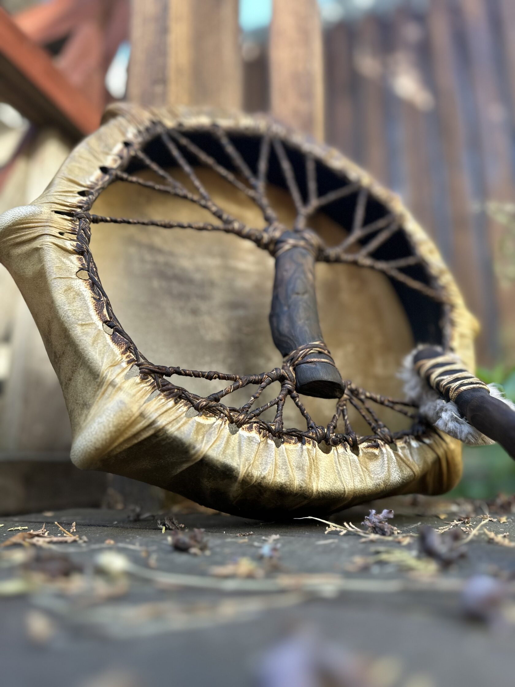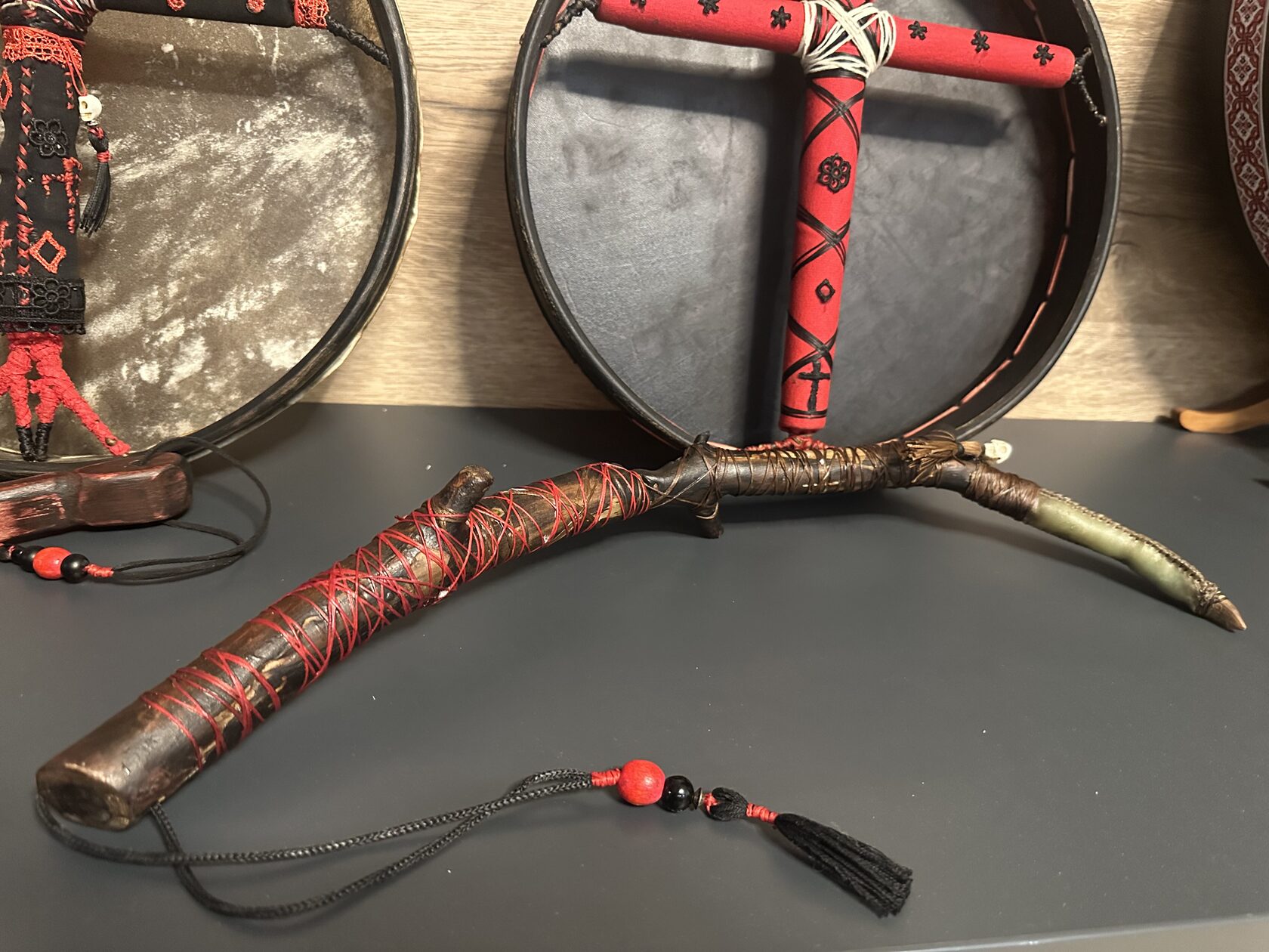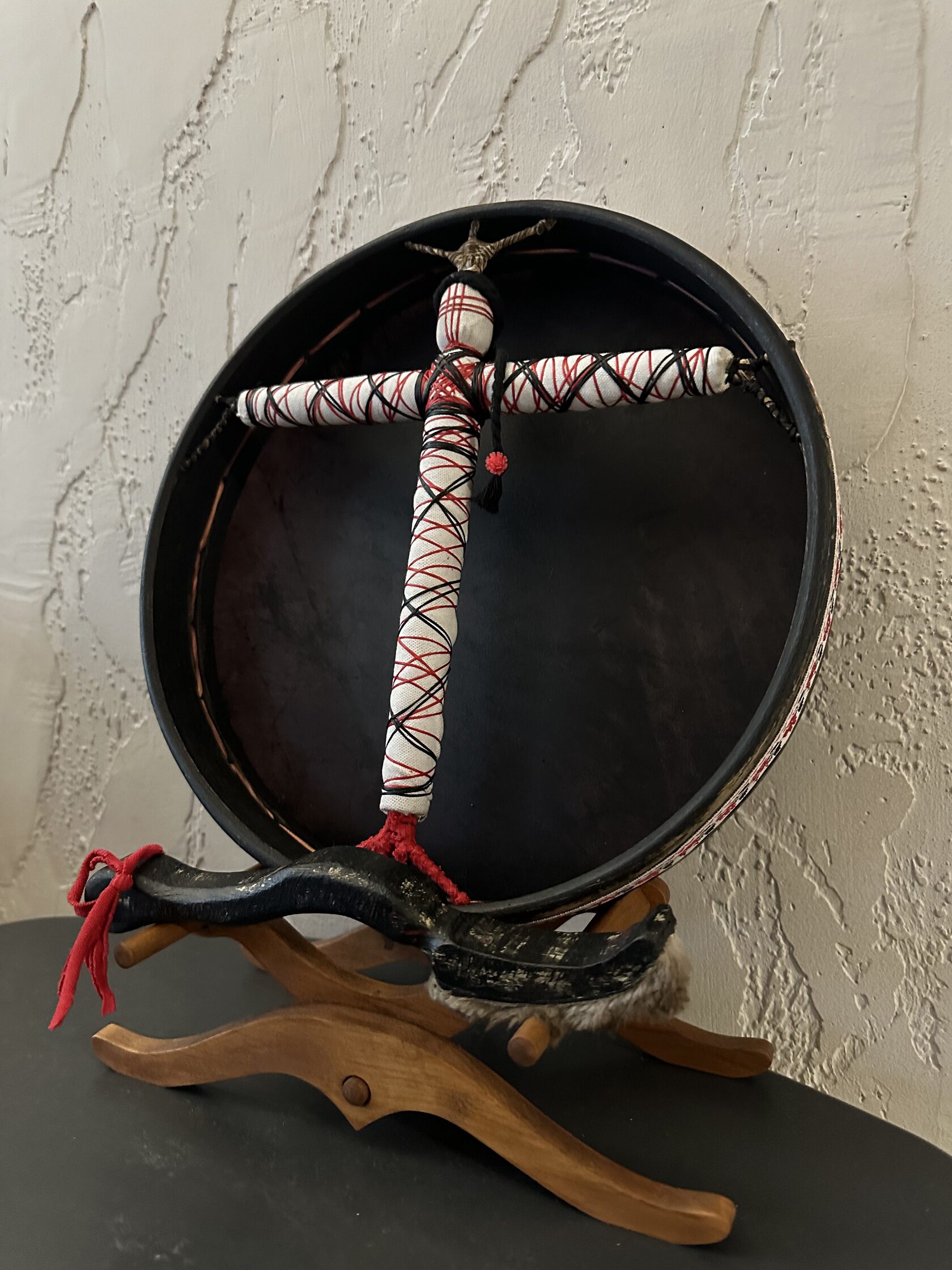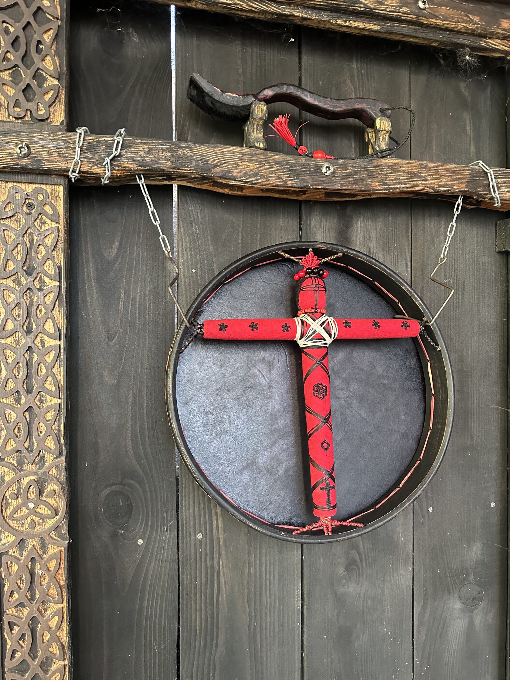 | Про мене Привіт. Мене звати Макс, і моя історія з бубнами почалася у 2015 році. Тоді я вперше вирішив зробити бубон для себе — так з’явилося хобі, яке з часом перетворилося на справу життя. У 2018 році я зробив сміливий вибір: після 18 років у великій компанії залишив офісну роботу, щоб присвятити себе ремеслу. Відтоді створення шаманських бубнів стало моєю професією та покликанням. За понад 10 років я виготовив більше двох тисяч бубнів, і сьогодні вони звучать у багатьох країнах світу. Завдяки багаторічній практиці та наполегливій роботі мені вдалося виробити власний підхід до створення інструментів. Саме тому кожен бубон має глибокий і насичений низький звук, який відчувається всім тілом. Це результат досвіду, який приходить лише з роками кропіткої праці. Окрему увагу я приділяю рукояткам: від символічних «Дерев життя» до складних різьблених фігур, створених вручну. Кожна рукоятка несе власний образ і сенс, роблячи інструмент неповторним. Я працюю лише з натуральними матеріалами: козячою шкірою для мембран, ясеневим деревом для ободів, сосною та вільхою для рукояток і колотушок. У декорі використовую метал, каміння, бісер, льон та інші природні матеріали, щоб надати кожному виробу завершеного образу й особливої сили. Кожен виріб народжується в моїй майстерні виключно вручну, має свій характер і допомагає власнику відкрити внутрішній ритм та силу. |