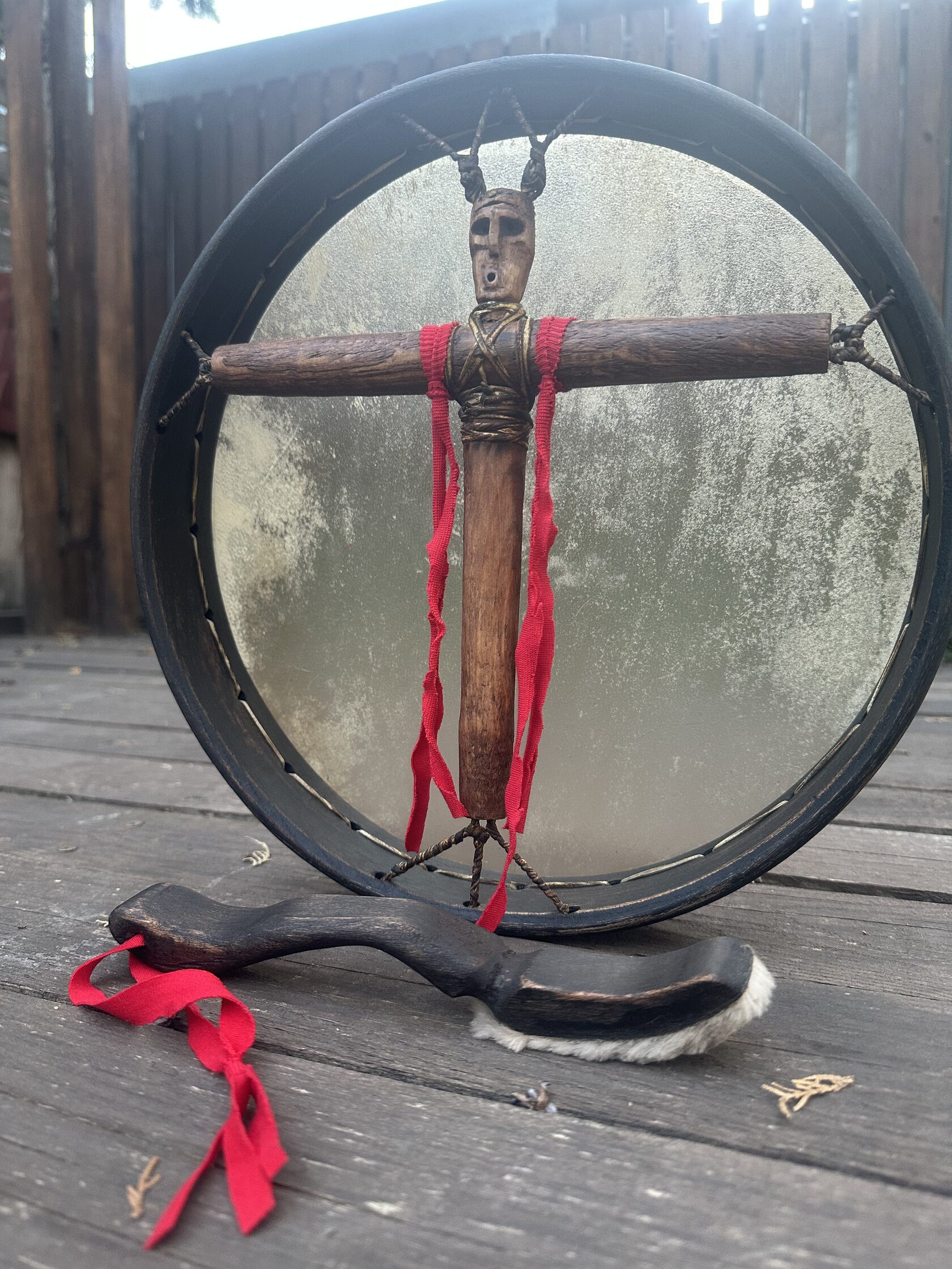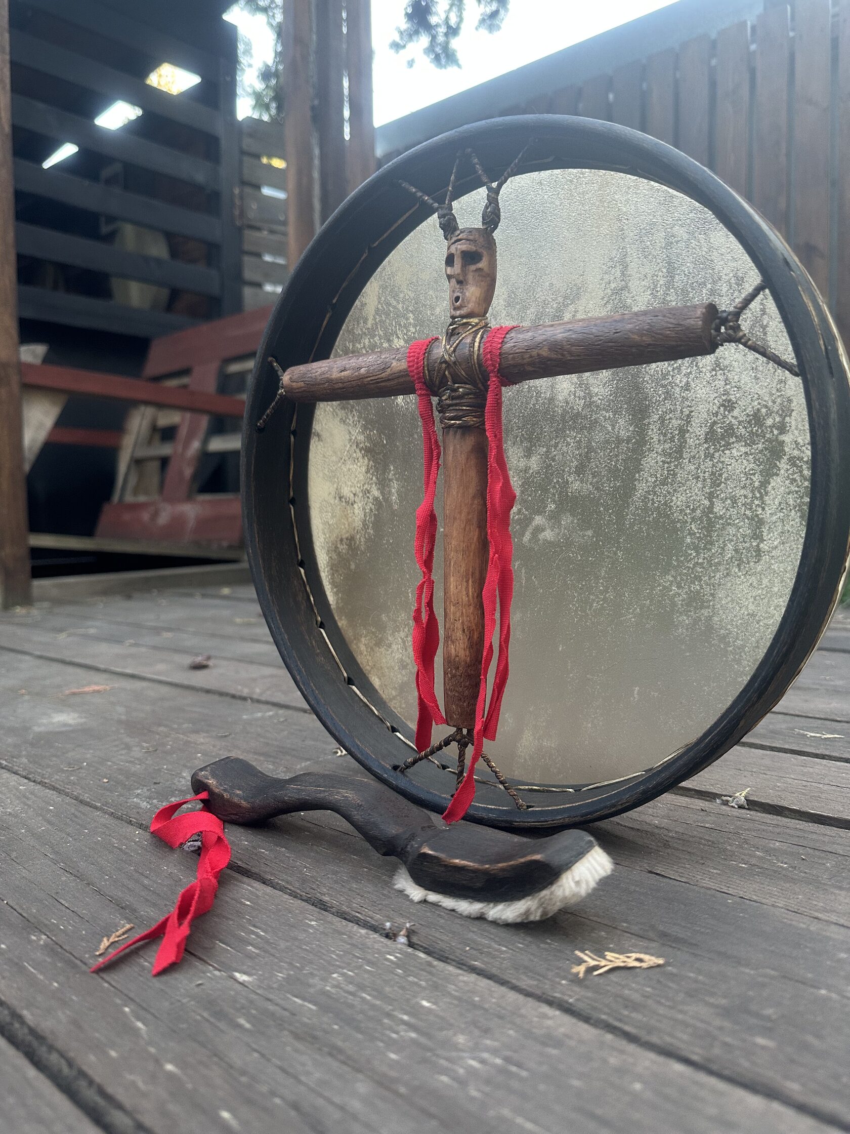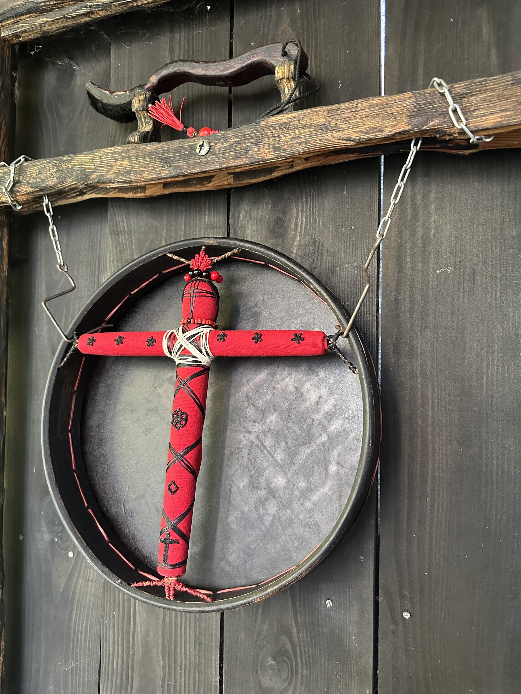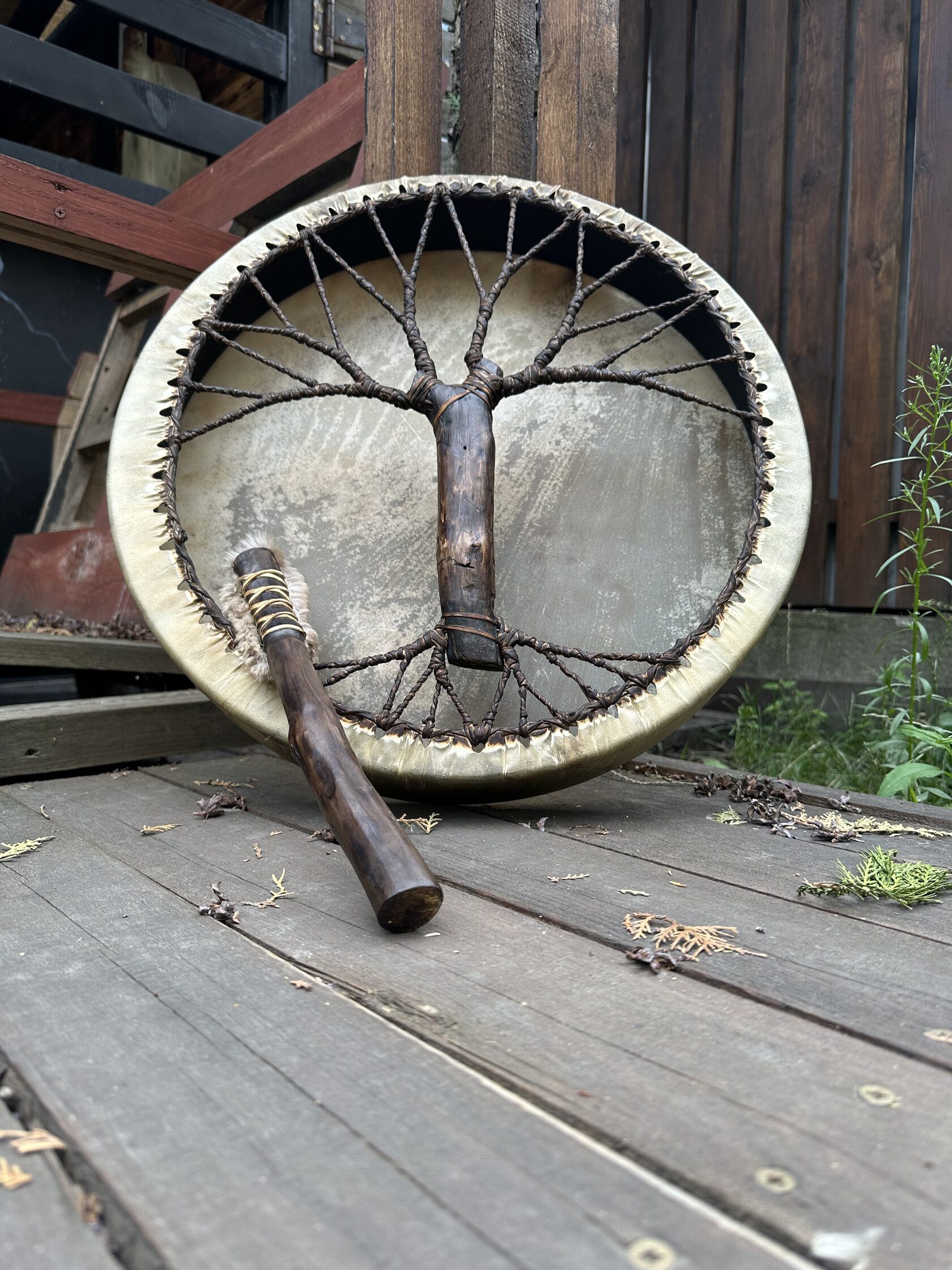 | Про мене Привіт. Мене звати Макс, і моя історія з бубнами почалася у 2015 році. Тоді я вперше вирішив зробити бубон для себе — так з’явилося хобі, яке з часом перетворилося на справу життя. У 2018 році я зробив сміливий вибір: після 18 років у великій компанії залишив офісну роботу, щоб присвятити себе ремеслу. Відтоді створення шаманських бубнів стало моєю професією та покликанням. За понад 10 років я виготовив більше двох тисяч бубнів, і сьогодні вони звучать у багатьох країнах світу. Завдяки багаторічній практиці та наполегливій роботі мені вдалося виробити власний підхід до створення інструментів. Саме тому кожен бубон має глибокий і насичений низький звук, який відчувається всім тілом. Це результат досвіду, який приходить лише з роками кропіткої праці. Окрему увагу я приділяю рукояткам: від символічних «Дерев життя» до складних різьблених фігур, створених вручну. Кожна рукоятка несе власний образ і сенс, роблячи інструмент неповторним. Я працюю лише з натуральними матеріалами: козячою шкірою для мембран, ясеневим деревом для ободів, сосною та вільхою для рукояток і колотушок. У декорі використовую метал, каміння, бісер, льон та інші природні матеріали, щоб надати кожному виробу завершеного образу й особливої сили. Кожен виріб народжується в моїй майстерні виключно вручну, має свій характер і допомагає власнику відкрити внутрішній ритм та силу. |
