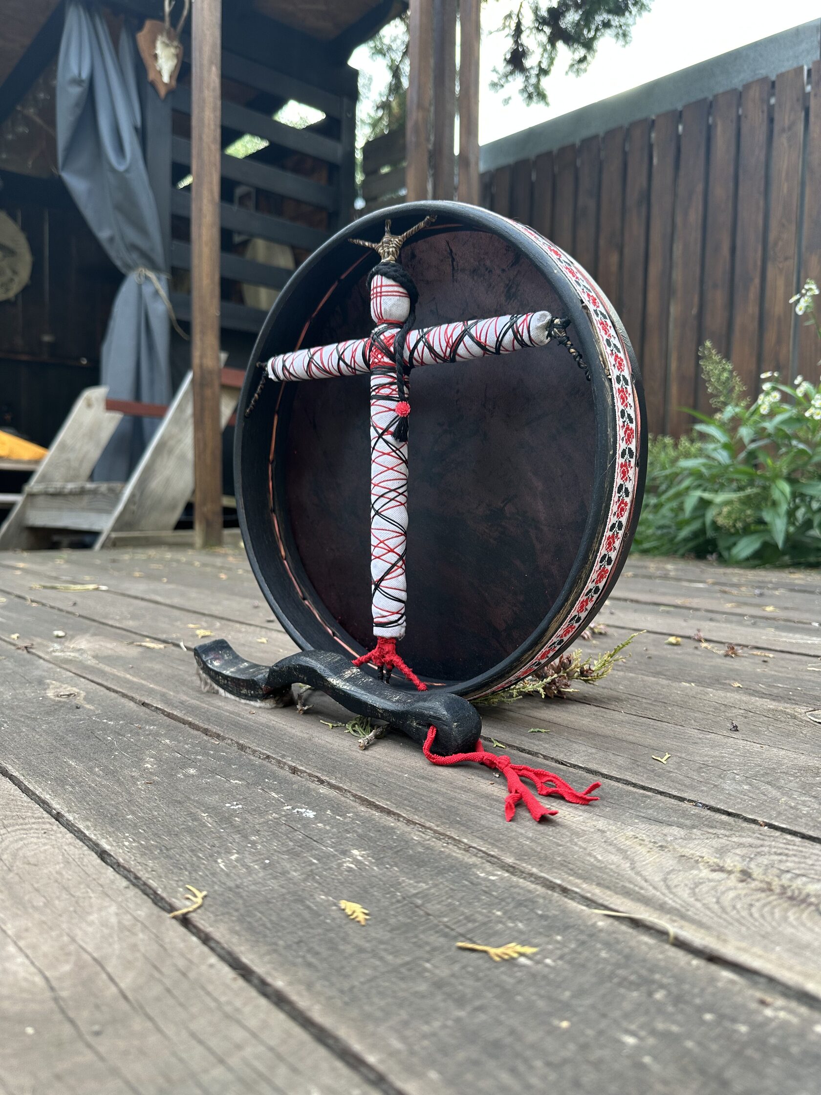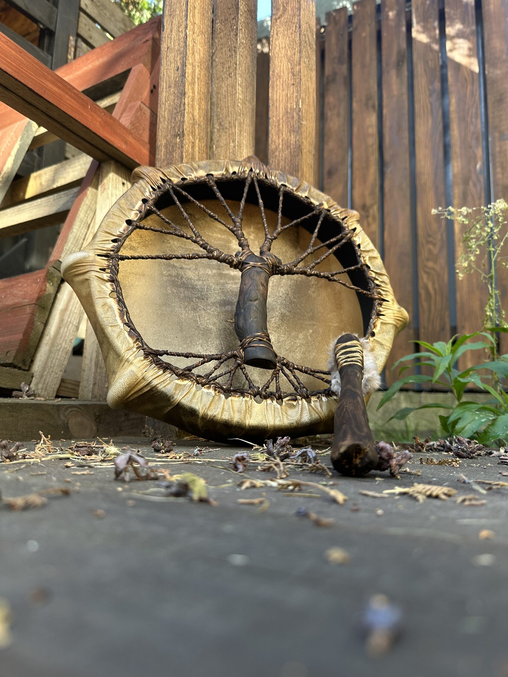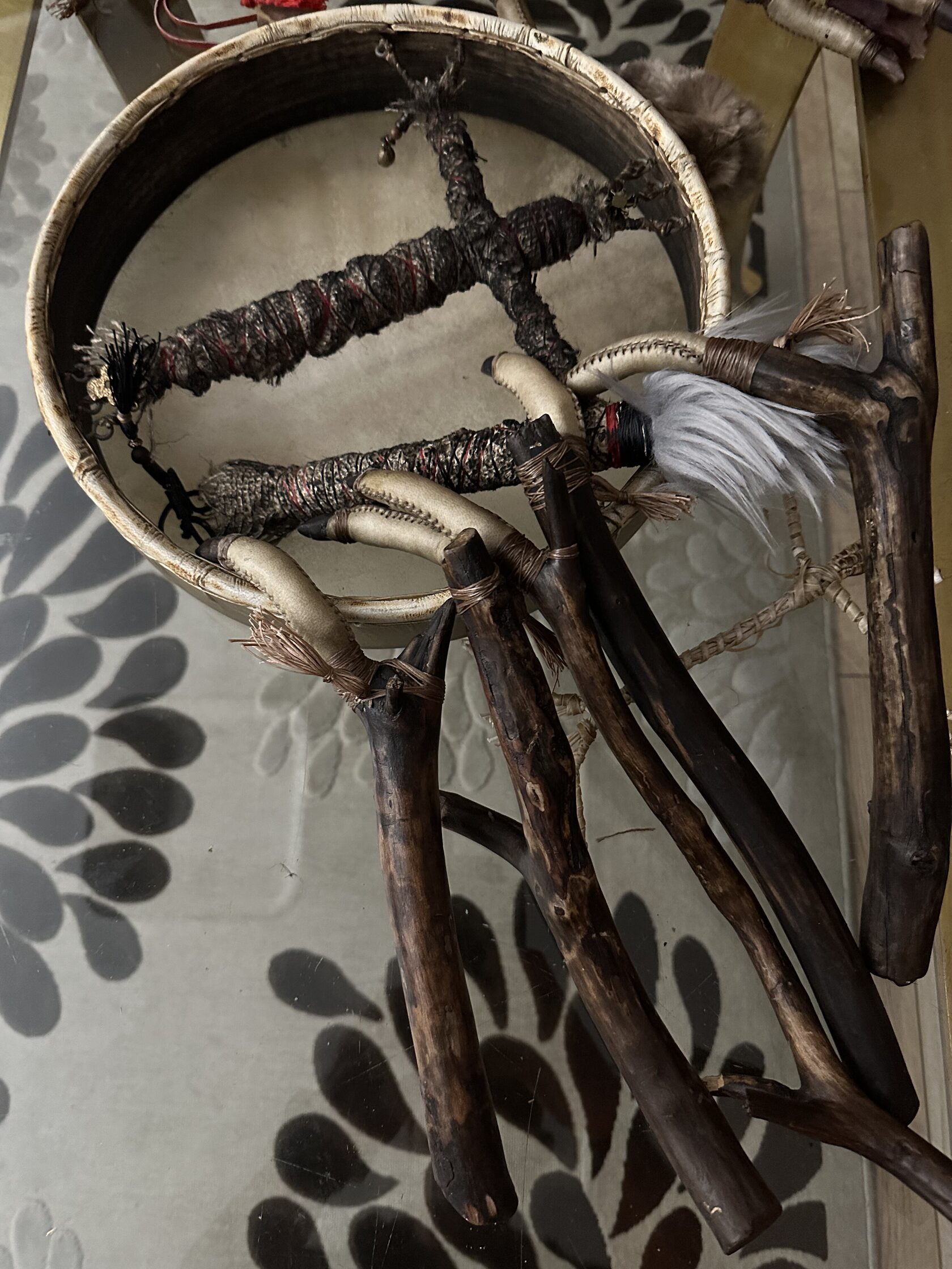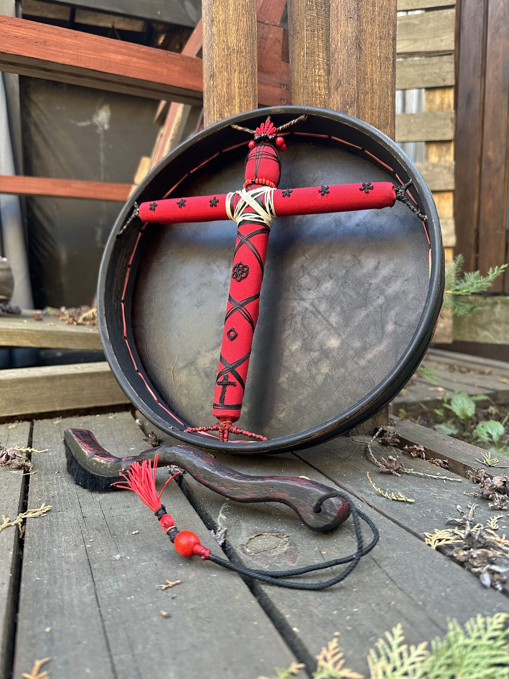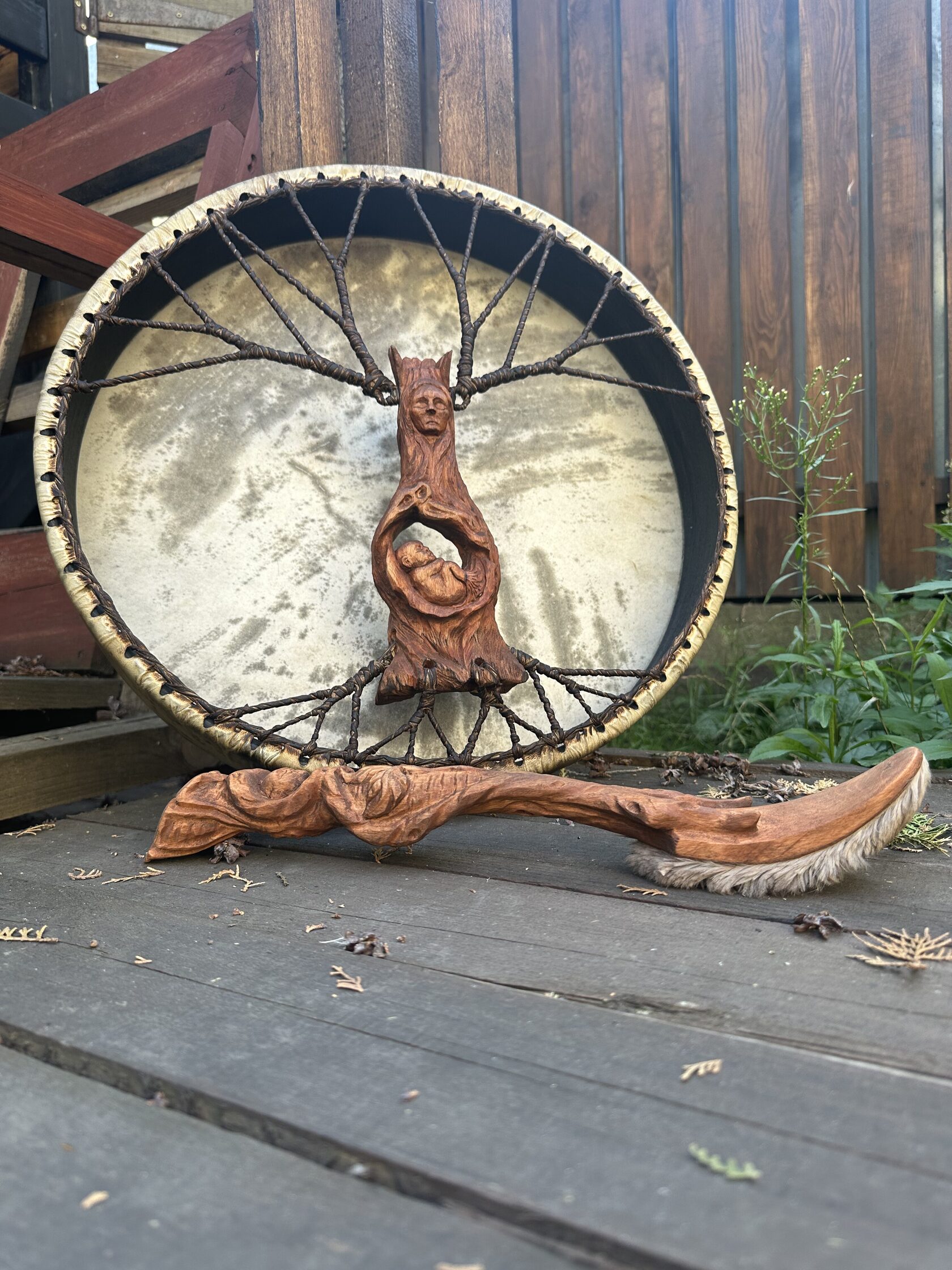 | Про мене Привіт. Мене звати Макс, і моя історія з бубнами почалася у 2015 році. Тоді я вперше вирішив зробити бубон для себе — так з’явилося хобі, яке з часом перетворилося на справу життя. У 2018 році я зробив сміливий вибір: після 18 років у великій компанії залишив офісну роботу, щоб присвятити себе ремеслу. Відтоді створення шаманських бубнів стало моєю професією та покликанням. За понад 10 років я виготовив більше двох тисяч бубнів, і сьогодні вони звучать у багатьох країнах світу. Завдяки багаторічній практиці та наполегливій роботі мені вдалося виробити власний підхід до створення інструментів. Саме тому кожен бубон має глибокий і насичений низький звук, який відчувається всім тілом. Це результат досвіду, який приходить лише з роками кропіткої праці. Окрему увагу я приділяю рукояткам: від символічних «Дерев життя» до складних різьблених фігур, створених вручну. Кожна рукоятка несе власний образ і сенс, роблячи інструмент неповторним. Я працюю лише з натуральними матеріалами: козячою шкірою для мембран, ясеневим деревом для ободів, сосною та вільхою для рукояток і колотушок. У декорі використовую метал, каміння, бісер, льон та інші природні матеріали, щоб надати кожному виробу завершеного образу й особливої сили. Кожен виріб народжується в моїй майстерні виключно вручну, має свій характер і допомагає власнику відкрити внутрішній ритм та силу. |