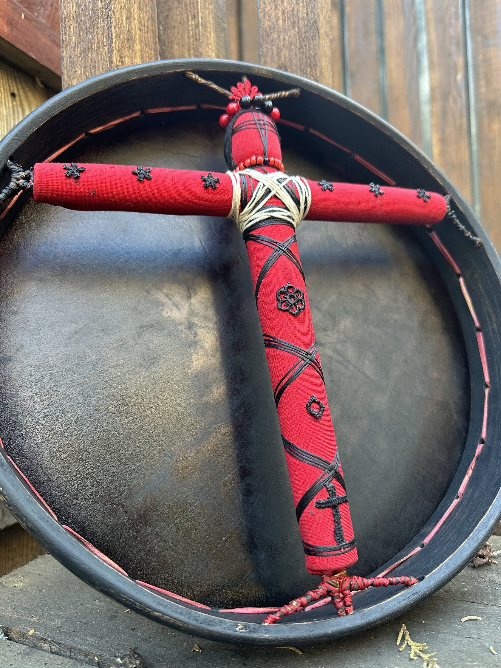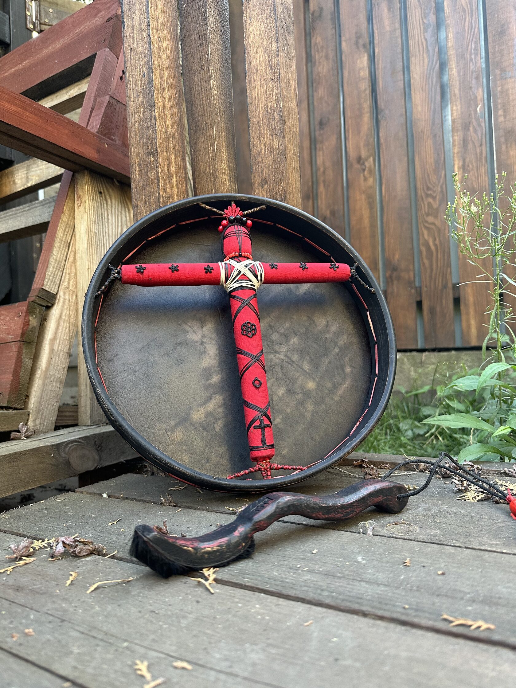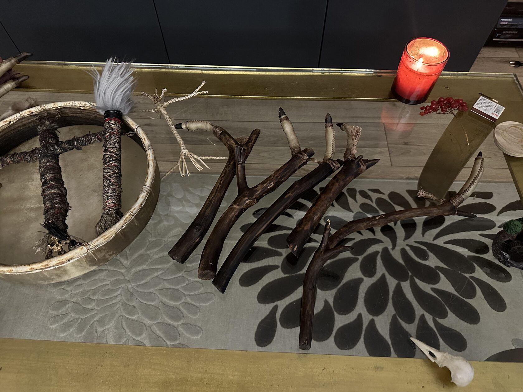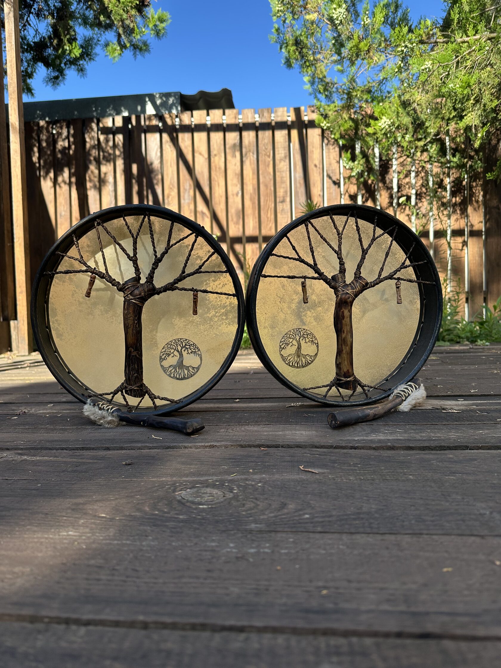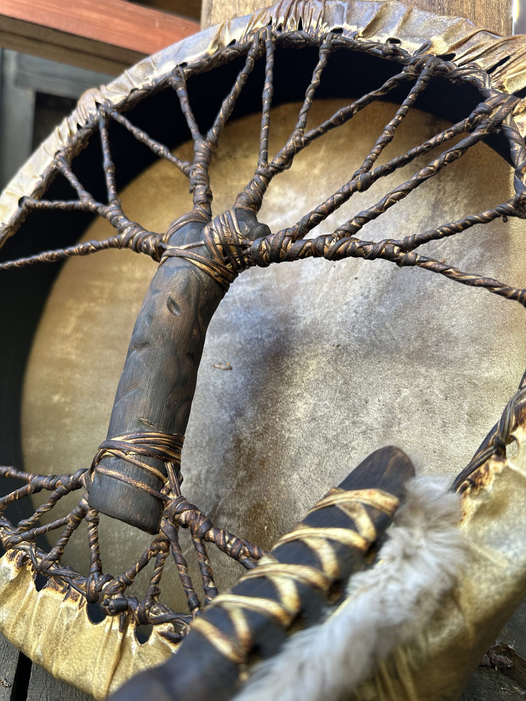 | Про мене Привіт. Мене звати Макс, і моя історія з бубнами почалася у 2015 році. Тоді я вперше вирішив зробити бубон для себе — так з’явилося хобі, яке з часом перетворилося на справу життя. У 2018 році я зробив сміливий вибір: після 18 років у великій компанії залишив офісну роботу, щоб присвятити себе ремеслу. Відтоді створення шаманських бубнів стало моєю професією та покликанням. За понад 10 років я виготовив більше двох тисяч бубнів, і сьогодні вони звучать у багатьох країнах світу. Завдяки багаторічній практиці та наполегливій роботі мені вдалося виробити власний підхід до створення інструментів. Саме тому кожен бубон має глибокий і насичений низький звук, який відчувається всім тілом. Це результат досвіду, який приходить лише з роками кропіткої праці. Окрему увагу я приділяю рукояткам: від символічних «Дерев життя» до складних різьблених фігур, створених вручну. Кожна рукоятка несе власний образ і сенс, роблячи інструмент неповторним. Я працюю лише з натуральними матеріалами: козячою шкірою для мембран, ясеневим деревом для ободів, сосною та вільхою для рукояток і колотушок. У декорі використовую метал, каміння, бісер, льон та інші природні матеріали, щоб надати кожному виробу завершеного образу й особливої сили. Кожен виріб народжується в моїй майстерні виключно вручну, має свій характер і допомагає власнику відкрити внутрішній ритм та силу. |